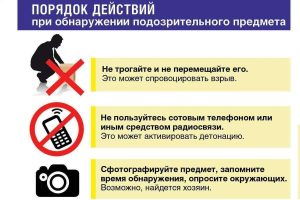 - Категорически запрещается трогать, вскрывать, передвигать или предпринимать какие-либо иные действия с обнаруженным предметом.